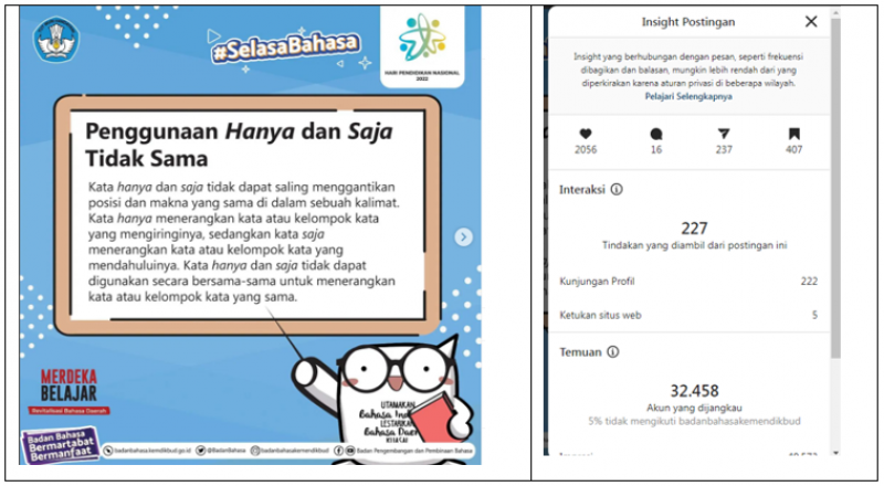 banyak dinanti oleh warganet dibandingkan konten lainnya. Berikut ini beberapa konten #SelasaBahasa yang disajikan di Instagram Badan Pengembangan dan