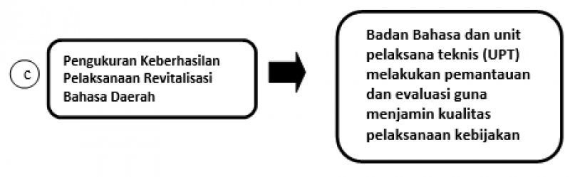 Peran Badan Bahasa sebagai pemerintah pusat adalah mendesain pelibatan dan dukungan masyarakat, pemerintah daerah, perguruan tinggi, dinas pendidikan, dan sekolah serta menentukan waktu pelaksanaan kebijakan revitalisasi bahasa daerah. Dalam penyusunan formulasi kebijakan ini akan terlihat jelas peran setiap pihak dalam implementasinya. Alur formulasi kebijakan revitalisasi bahasa daerah dapat dilihat dalam infografis berikut.