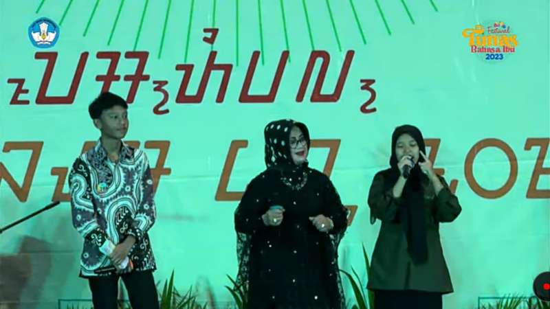 Kegiatan Festival Tunas Bahasa Ibu tahun 2023 ditutup secara resmi oleh Kepala Badan Pengembangan dan Pembinaan Bahasa. Beberapa pemenang lomba Nembang Pupuh Putra dan Putri yang berkolaborasi dengan yayasan Cangkurileung Mang Koko unjuk kebolehan dan turut menyemarakkan acara penutupan Festival Tunas Bahasa Ibu di Provinsi Jawa Barat ini. (MA/Darman)