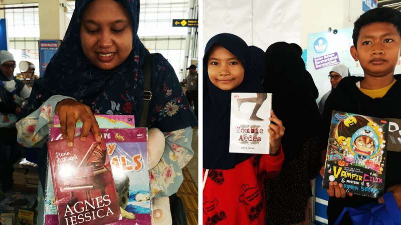 Tak kalah antusias, salah seorang pemudik yang akan melakukan perjalanan ke Kota Padang, siswa kelas 5 di Madrasah Ibtidaiyah (MI) At Taufiq, Jakarta Utara, Afiqa memilih buku bacaan novel “Zombie Aedes” karya Satria Satire. “Hobi saya membaca buku. Semoga hobi saya ini dapat membawa saya menggapai cita-cita menjadi seorang Hakim,” kata Afiqa.