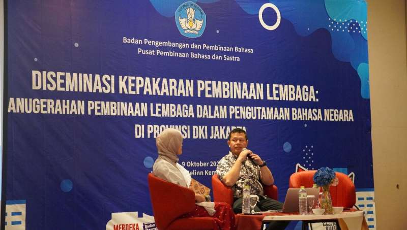 Jakarta, 10 Oktober 2024— Badan Pengembangan dan Pembinaan Bahasa (Badan Bahasa), Kementerian Pendidikan, Kebudayaan, Riset, dan Teknologi (Kemendikbudristek), menyelenggarakan kegiatan Diseminasi Kepakaran Pembinaan Lembaga: Penganugerahan Pembinaan Lembaga dalam Pengutamaan Bahasa Negara di Jakarta, Rabu ( 9/10). Kegiatan ini dihadiri oleh 100 undangan yang berasal dari 45 lembaga pemerintah, 27 lembaga pendidikan, dan 15 lembaga swasta.
