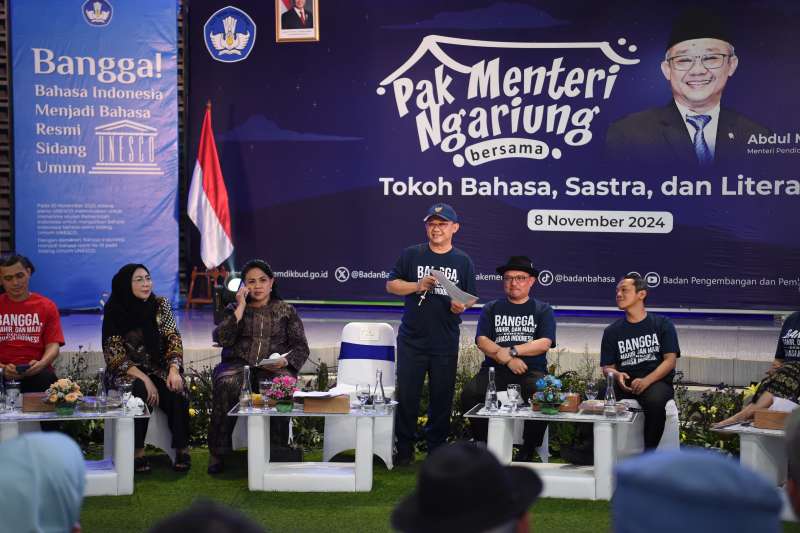Jakarta, 9 November 2024 – Kementerian Pendidikan Dasar dan Menengah (Kemendikdasmen), melalui Badan Pengembangan dan Pembinaan Bahasa (Badan Bahasa), menyelenggarakan acara "Pak Menteri Ngariung Bersama Tokoh Bahasa, Sastra, dan Literasi". Acara ini menjadi ajang menjaring aspirasi bidang kesusastraan yang ditujukan untuk memajukan bahasa, sastra, dan literasi melalui pendidikan di Indonesia.