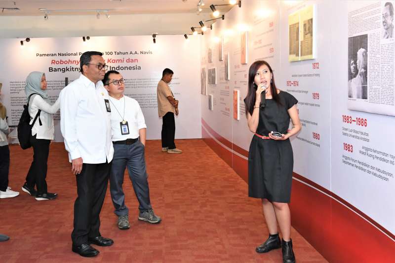 Jakarta, 19 November 2024 – Kementerian Pendidikan Dasar dan Menengah (Kemendikdasmen), melalui Pusat Pembinaan Bahasa dan Sastra, Badan Pengembangan dan Pembinaan Bahasa (Badan Bahasa), menggelar Pameran Nasional Peringatan 100 tahun A.A Navis. Pameran ini menjadi puncak dari rangkaian acara Peringatan 100 tahun A.A Navis yang dilakukan Badan Bahasa bersama Perpustakan Nasional Republik Indonesia (Perpusnas).