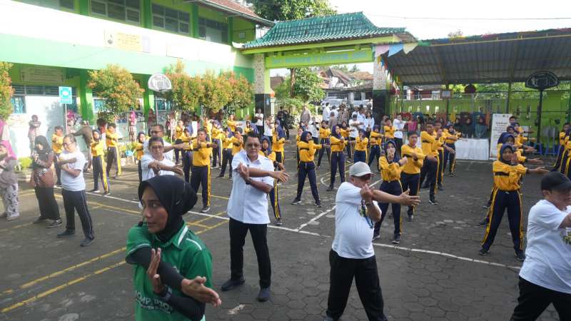 Sebelum memberi wejangan motivasi, Menteri Mu’ti didampingi Kepala Badan Pengembangan dan Pembinaan (Badan Bahasa) Kementerian Pendidikan Dasar dan Menengah (Kemendikdasmen), Wakil Bupati Sleman, Kepala BPMP Provinsi DIY, Kepala BBGP Provinsi DIY, Kepala Balai Bahasa Provinsi DIY bersama dengan siswa, guru, dan tenaga kependidikan SMPN 1 Turi melakukan Senam Anak Indonesia Hebat (SAIH).