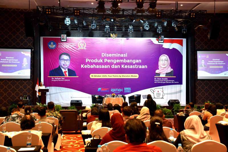 Medan, 18 Oktober 2025—Badan Pengembangan dan Pembinaan Bahasa (Badan Bahasa), Kementerian Pendidikan Dasar dan Menengah (Kemendikdasmen) melaksanakan Diseminasi Program Kebahasaan dan Kesastraan Tahun 2025 kepada ekosistem pendidikan pada 18 Oktober 2025 di Medan, Sumatra Utara.