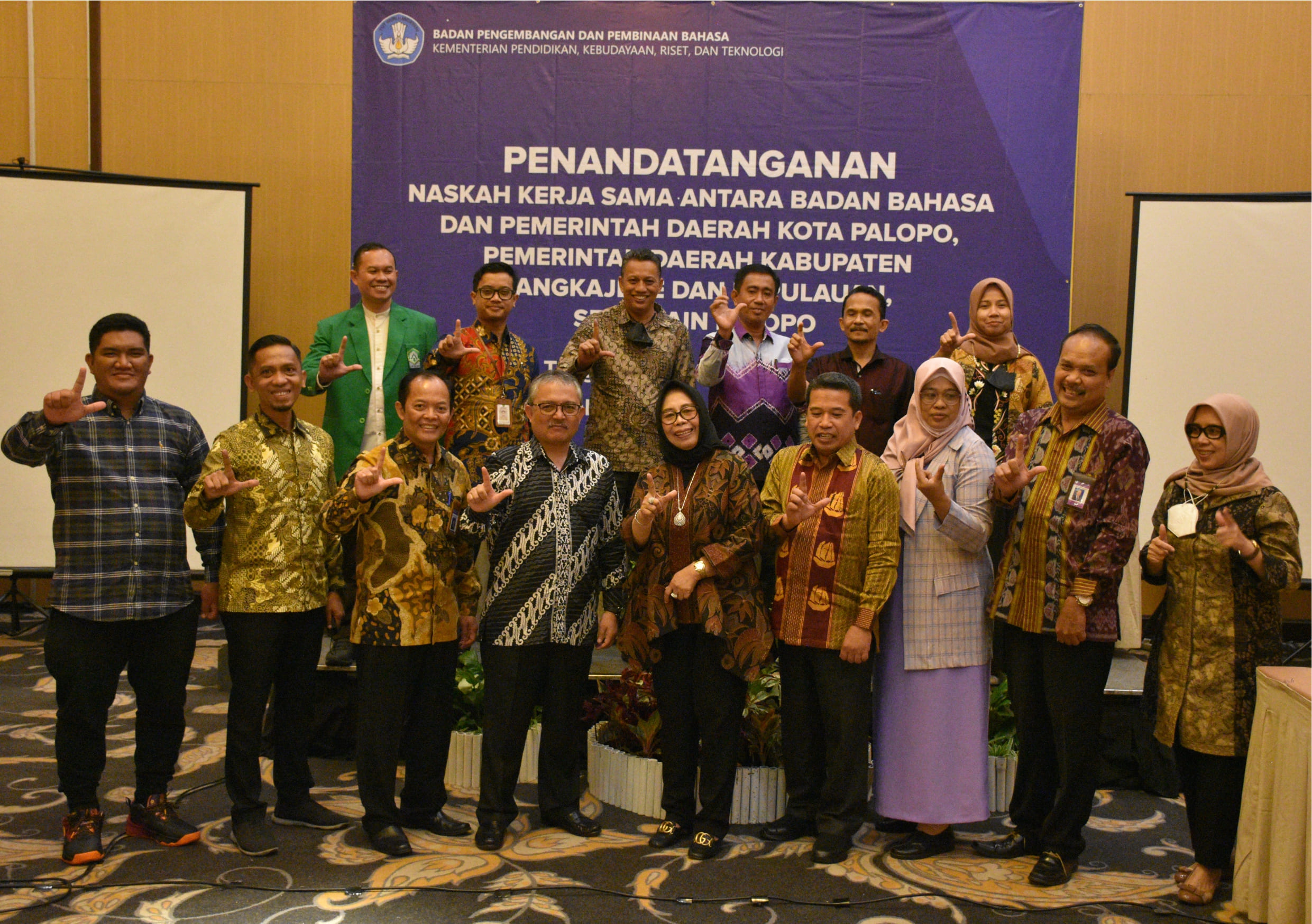 Penandatanganan naskah kerjasama antara Badan Bahasa dan Pemerintah Daerah Kota Palopo, Daerah Kabupaten Pangkajene dan Kepulauan serta IAIN Palopo, Sulawesi Selatan.