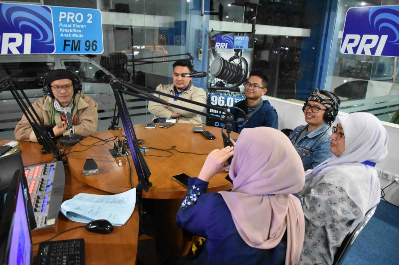 Suasana Siaran Langsung Peserta Bengkel Penulisan Esai Mastera di RRI Pro 2 FM Bandung